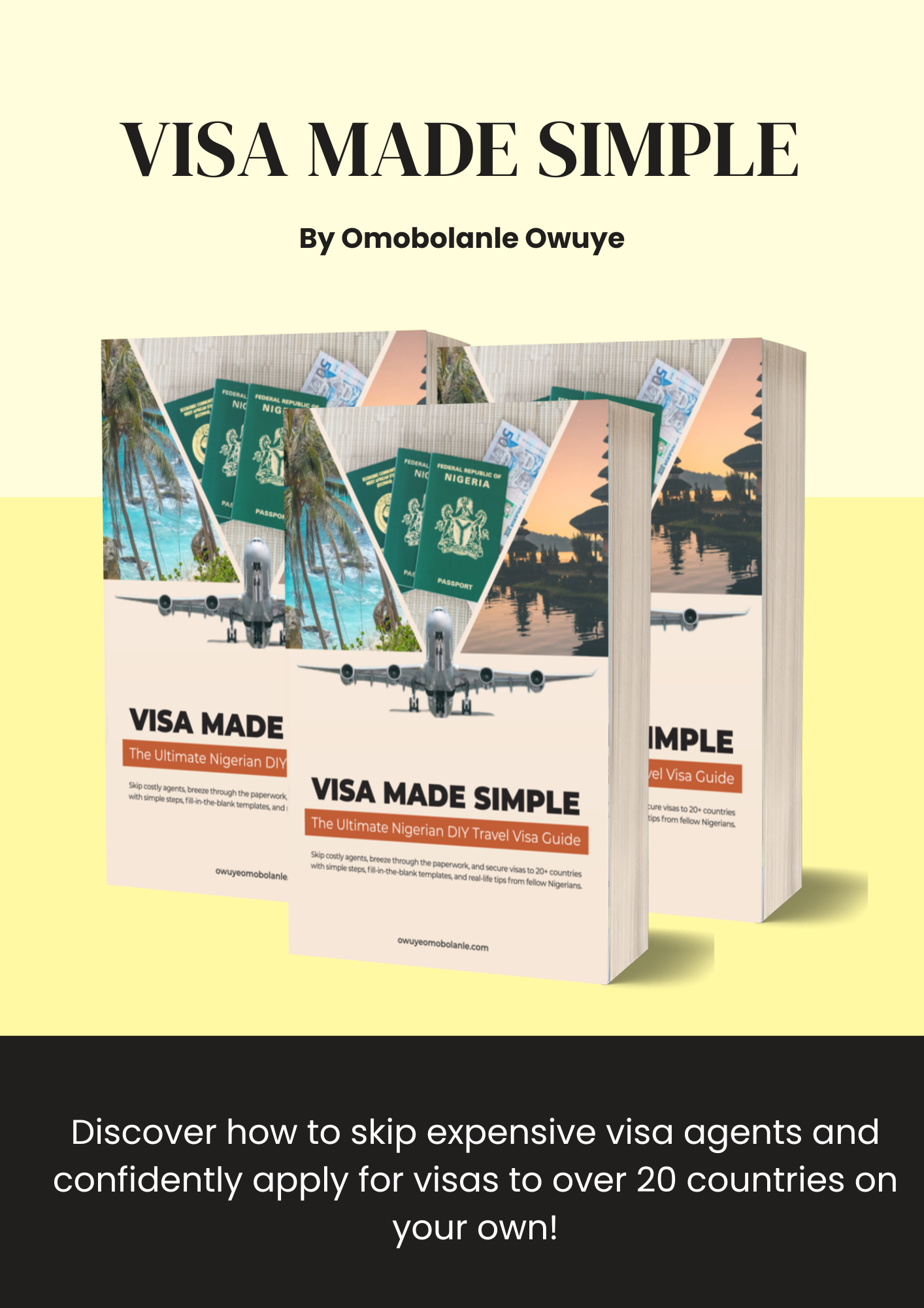 Written by Omobolanle, a travel consultant and health practitioner, this guide is packed with expert insights, checklists, and real-world advice tailored for Nigerians. Whether you’re travelling for leisure, business, or study, Visa Made Easy helps you avoid common mistakes and take full control of your journey.